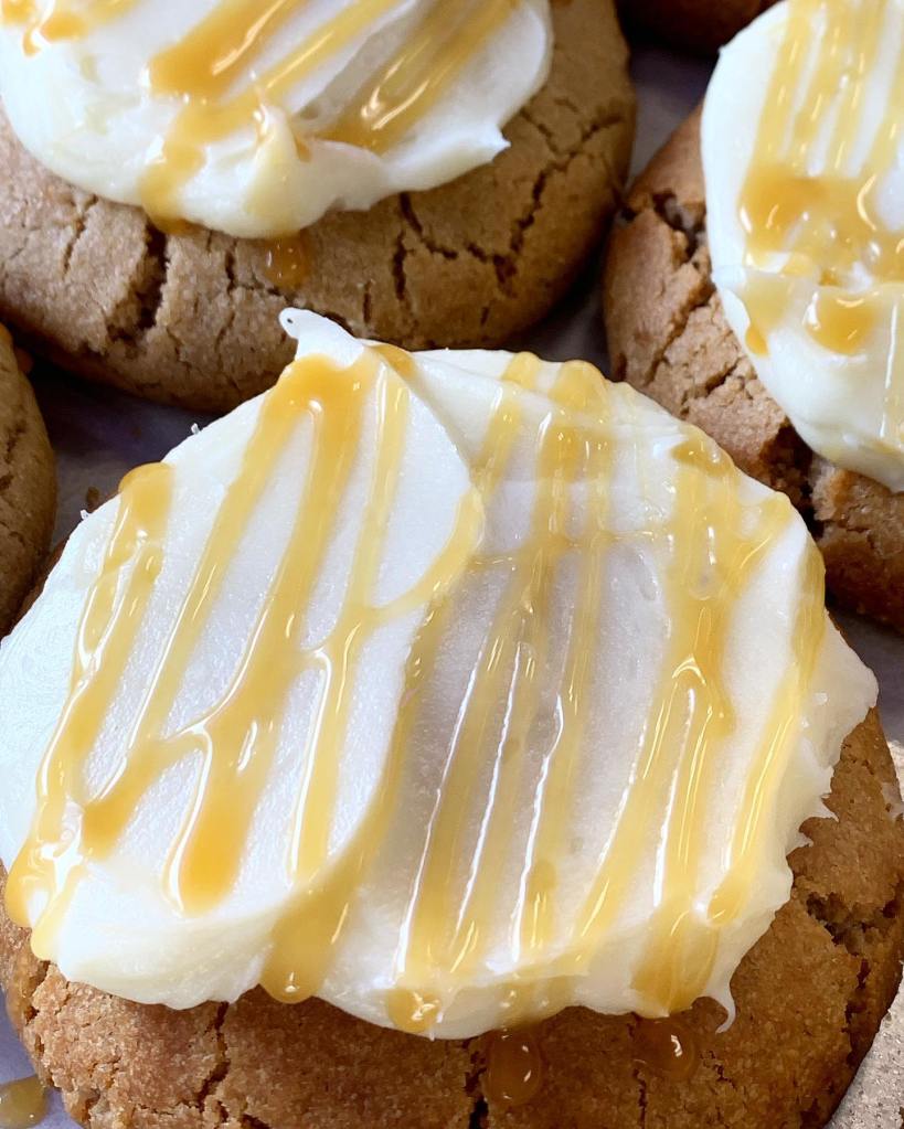 Cookie Butter Crumble- Biscoff Cookie butter base cookie, stuffed with cookie butter, topped with a cookie butter buttercream and crushed Biscoff Cookies!