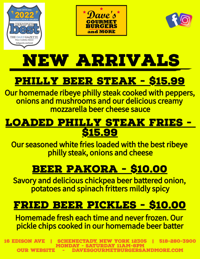 Please consider placing your order for pick up or delivery through our website at: https://davesgourmetburgers.localfoods2go.com/home