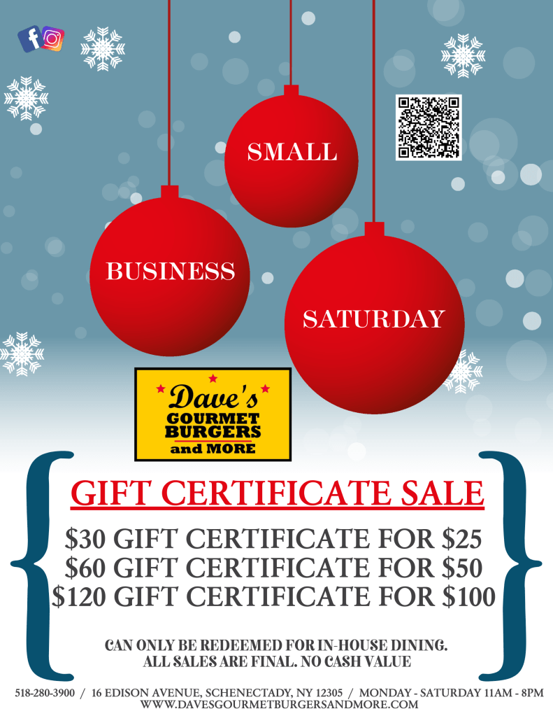 Happy Small Business Saturday! Thank you for supporting our small business for over 15 years now. We will be having a gift certificate sale today! Buy a $30 GIFT CERTIFICATE for only $25! Buy a $60 GIFT CERTIFICATE for only $50! Buy a $120 GIFT CERTIFICATE for only $100! Gift certificates are great presents for those hard to shop people in your life, and especially good for those foodie lovers. This sale is available through our online ordering today as well.