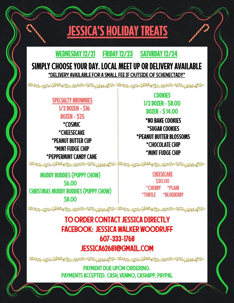 Many customers from the restaurant have asked if I was providing any Christmas Treats available this year for Christmas since I am no longer working full time at the restaurant. I am offering some treats available this week!